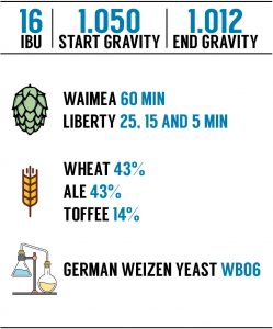 This German style wheat beer is a traditional wheat with a twist; commissioned for exclusive sale at Honey Bear Restaurant. We took our Sweet As, and added toffee malt from Gladfield and locally-sourced honey. The honey is added mid-fermentation to maintain complexity and keep the honey flavour subtle to avoid it being overly sweet.
