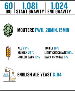 This deliciously dark stout is full-bodied, smooth and bitter. Laced with hints of caramel and chocolate, with a touch of coffee to finish. Surprisingly easy to drink, even for dark beer naysayers.